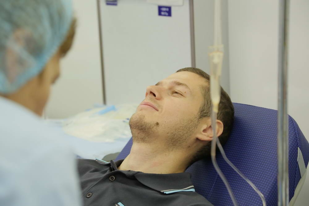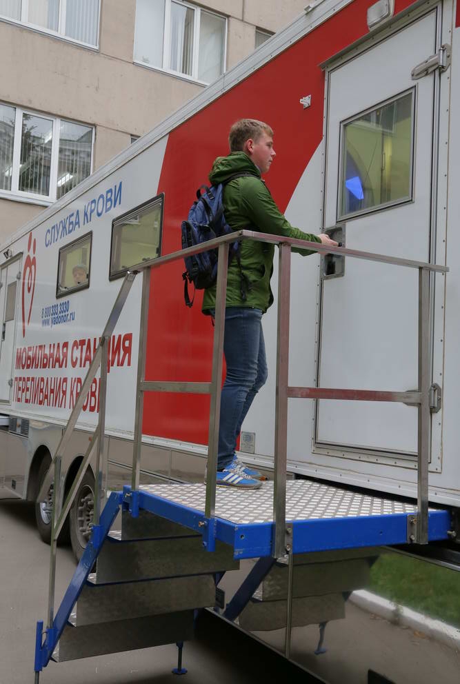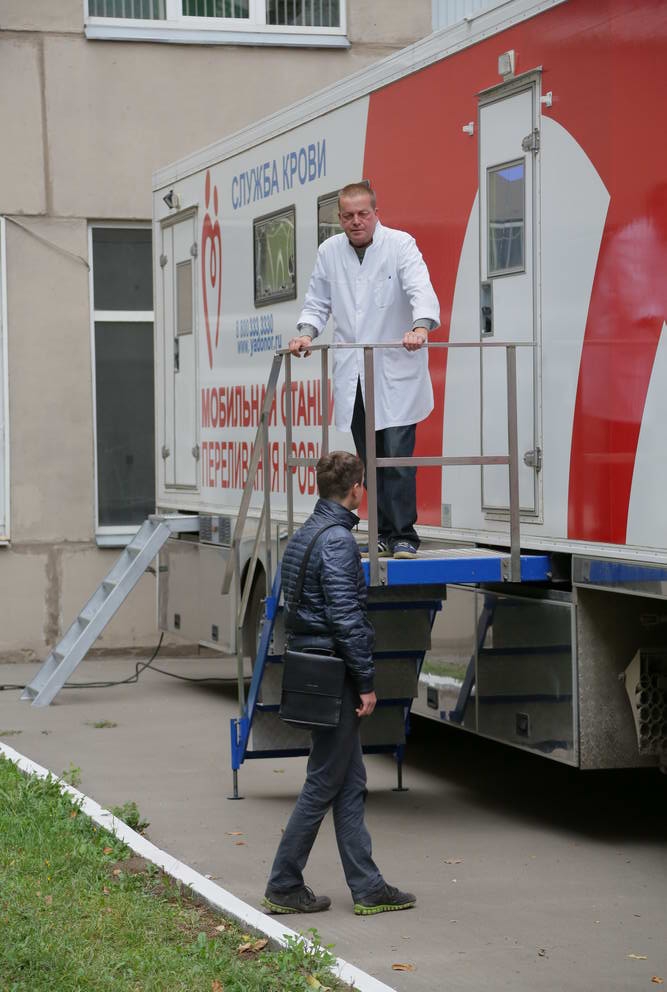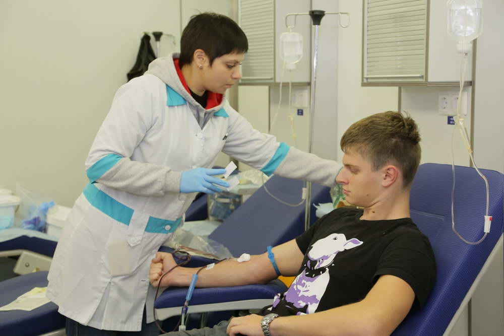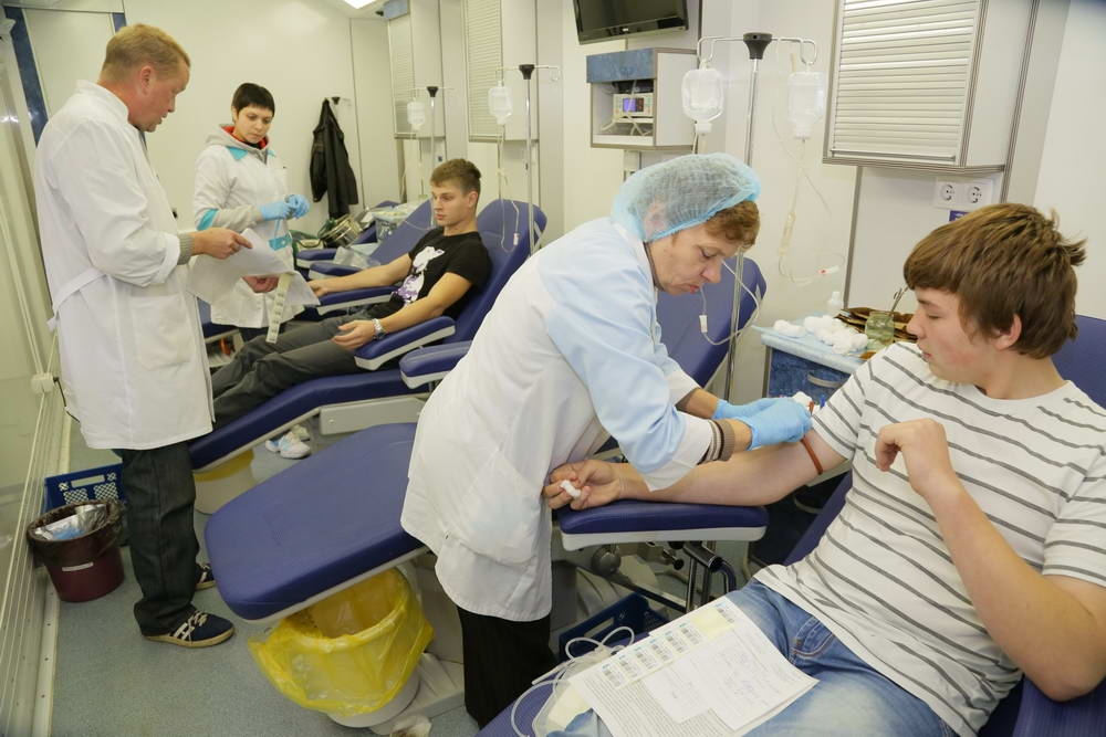 Первого и второго октября Тульская областная станция переливания крови совместно с Тульским государственным университетом проводит акцию по сбору донорской крови. Студенты, преподаватели и сотрудники нашего вуза в течение этих двух дней могут сдать кровь в мобильной станции переливания крови, которая базируется во дворе девятого учебного корпуса ТулГУ. — Мобильная станция переливания крови оснащена всем необходимым для сдачи крови оборудованием, — подчеркнул руководитель выездной бригады, врач-трансфузиолог Тульской областной станции переливания крови Владимир Александрович Токарев. — Для того чтобы сдать кровь, донору нужно пройти несколько этапов. Первый этап — регистратура, где каждый желающий сдать кровь предъявляет свой паспорт с пропиской в Туле или Тульской области, а затем заполняет донорскую анкету. Следующий этап — лаборатория, в которой будущий донор сдаёт анализы. Самый главный показатель — это уровень гемоглобина в крови. Он не должен быть ниже 120 у женщин и ниже 130 у мужчин. Третий этап — кабинет врача. В ходе беседы, так называемого сбора анамнеза, выясняется наличие тех заболеваний, при которых сдача крови на донорство противопоказана. Иными словами, решается вопрос о допуске будущего донора к сдаче крови. Если нет никаких противопоказаний, то человек сдаёт кровь. Что же касается противопоказаний, то имеются в виду повышенное артериальное давление, любые хронические заболевания, перенесённые операции. Например, после аппендэктомии должен пройти год, прежде чем человек будет допущен к сдаче крови. А после удаление зуба надо выждать десять дней. Нельзя сдавать кровь, если у человека имеются камни в желчном пузыре или желчный пузырь удалён. Женщинам нельзя сдавать кровь при крупных размерах миомы матки, а молоденьким девушкам — при воспалении придатков. Противопоказана сдача крови во время приёма антибиотиков, а также во время таких заболеваний, как ОРВИ, ОРЗ, грипп и другие инфекции. С противопоказаниями разобрались, теперь переходим к четвёртому этапу. После беседы с врачом донор пьёт чай (сладкий — по желанию) с печеньем. Пятый этап — это непосредственный забор крови, который осуществляется в операционном зале. 20 мл крови мы берём на анализ, 450 мл — доза донорской крови. Естественно, мы наблюдаем за самочувствием наших доноров, поскольку забор крови все переносят индивидуально. Один человек ничего и не почувствует, а у другого слегка закружится голова, «мушки» перед глазами будут виться… Всё зависит от организма. Первичным, а иногда и вторичным донорам, мы вводим физиологический раствор, чтобы восстановить им утраченный объём крови. Ну и, наконец, последний этап, шестой. После сдачи крови донор снова возвращается в регистратуру, где получает справку на два дня отдыха, которые он может использовать в течение года со дня сдачи крови. Например, сдал человек кровь сегодня, первого октября 2014 года, значит, эти два дня отдыха он может взять в любое время, но не позднее первого октября 2015 года. Кроме того, в регистратуре донор получает денежную сумму в размере 5% от прожиточного минимума. В настоящее время в Туле этот размер составляет 405 рублей 20 копеек. На эти деньги можно пообедать после сдачи крови. Восполнить свои силы. — Я новичок, впервые сдаю кровь, — поделился второкурсник Института прикладной мат